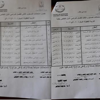 اعتمدت أ.د/ ماجدة هاشم بخيت عميد الكلية جداول امتحانات نهاية الفصل الدراسى الأول للعام الجامعى 2020-2021
