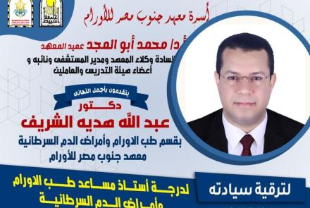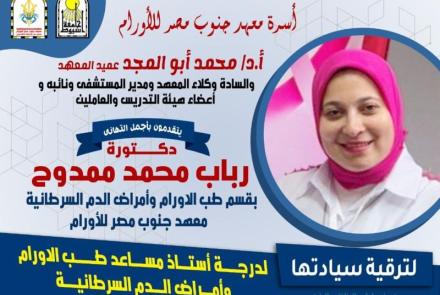 أعوام عديدة من الخبرة فى مجال الأورام والعديد من النجاحات المشهود لها فى صعيد مصر
