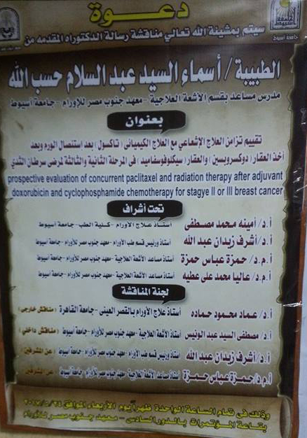 مناقشة رسالة دكتوراة للطبيبة /أسماء السيد عبدالسلام حسب الله 24 مايو 2017 مناقشة رسالة دكتوراة للطبيبة /أسماء السيد عبدالسلام حسب الله