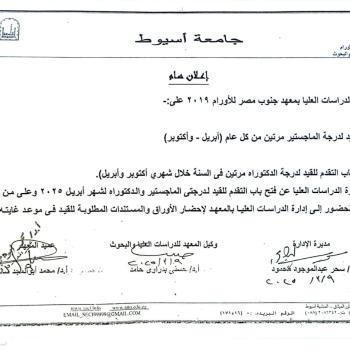 إعلان هااام للدراسات العليا بدء تلقي طلبات دخول الامتحانات (ماجستير - دكتوراة )