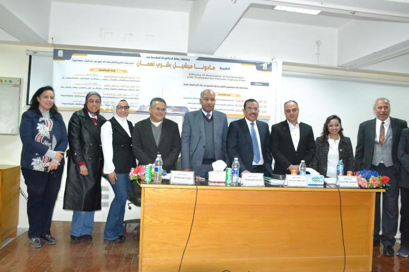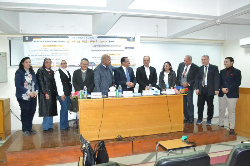 يهنئون الدكتورة/ مادونا ميشل بشري بقسم التخدير والانعاش وعلاج الالمبالمعهد لمناقشة وقبول رسالة الدكتوراة