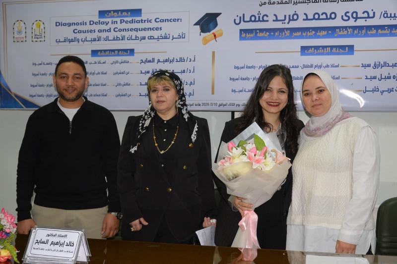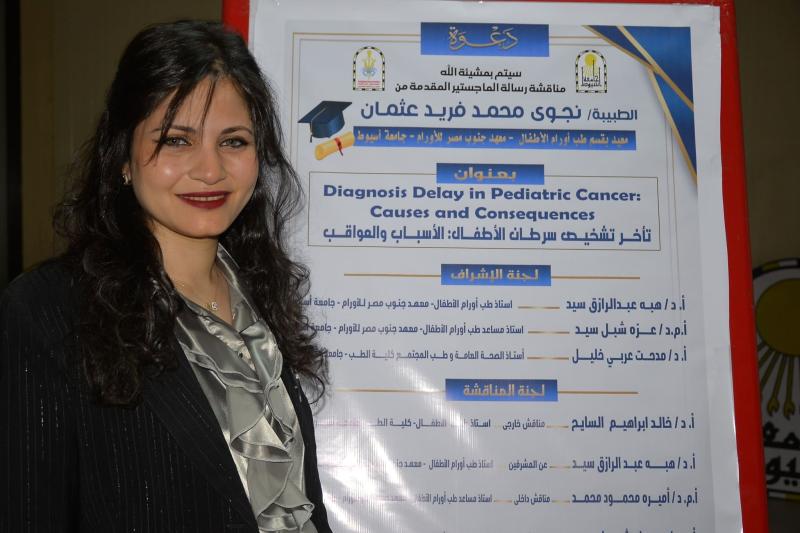 تهنئة مقدمة للدكتورة / نجوى محمد فريد عثمان بقسم طب أورام الاطفال بالمعهد لمناقشة وقبول رسالة الماجستير