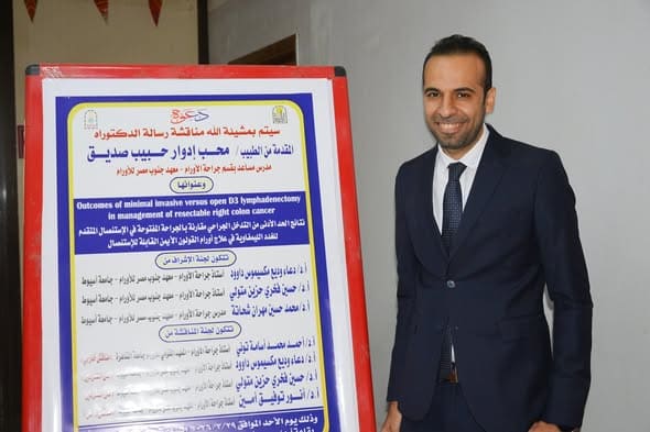 معهد جنوب مصر للأورام -مستشفى الأورام الجامعى السيد الاستاذ الدكتور عميد المعهد والسادة الوكلاء و مدير المستشفى ونائبه والسادة أعضاءهيئةالتدريس والعاملين.يهنئون الدكتور/ محب ادوار حبيب بقسم جراحة الأورام بالمعهد لمناقشة وقبول رسالة الدكتوراة مع تمنياتنا بدوام التقدم والنجاح