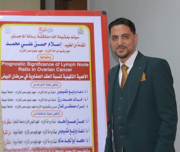 يتقدم معهد جنوب مصر للأورام -مستشفى الأورام الجامعى السيد الاستاذ الدكتور عميد المعهد والسادة الوكلاء و مدير المستشفى ونائبه والسادة أعضاءهيئةالتدريس والعاملين.يهنئون الدكتور/ إسلام حسن على بقسم جراحة الأورام بالمعهد لمناقشة وقبول رسالة الماجستير مع تمنياتنا بدوام التقدم والنجاح