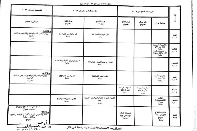 جدول امتحانات الدراسات العليا دور مايو 2026 ( ماجستير ) 22 أبريل 2026 جدول امتحانات الدراسات العليا دور مايو 2026 ( ماجستير )