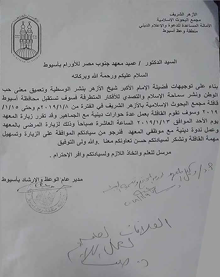 والسيد الاستاذ الدكتور مصطفى عبدالونيس مدير المستشفى والاستاذ الدكتور عبير السيد رئيس قسم طب الأورام بالمعهد