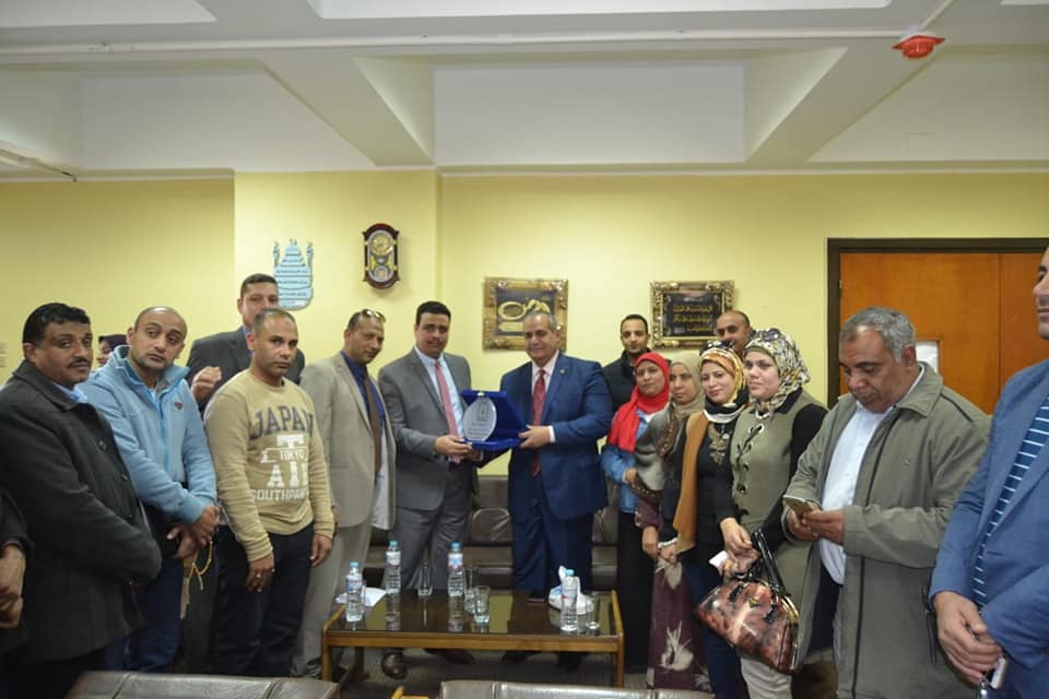 قدم ا.د سامي عبدالرحمن عميد المعهد درع المعهد وقام بتكريم أعضاء وفد الزيارة التي نظمها مجلس إدارة شركة الخدمات التجارية البترولية (بتروتريد) والعاملين بها لمرضي وأطفال معهد جنوب مصر للاورام ( مستشفي الأورام الجامعي)