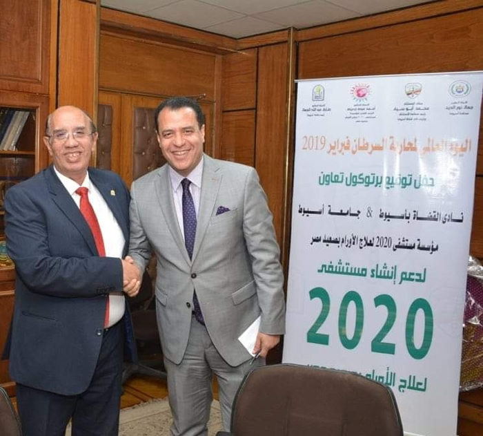 جاء ذلك خلال مراسم توقيع مذكرة تفاهم مع مؤسسة 2020 لعلاج الأورام بصعيد مصر وذلك بحضور الدكتور شحاتة غريب نائب رئيس الجامعة لشئون التعليم والطلاب ، والدكتور أحمد المنشاوي نائب رئيس الجامعة لشئون الدراسات العليا والبحوث والدكتور سامي عبد الرحمن عميد معهد جنوب مصر للأورام ، كما مثل المؤسسة فى الحضور الدكتور أحمد عبده جعيص رئيس جامعة أسيوط السابق والرئيس الشرفى للمؤسسة والدكتور مصطفى الشرقاوي رئيس مجلس أمناء المؤسسة وياسين ثابت أمينها العام وعدداً من أعضاء المؤسسة والداعمين لها من رجال الدينين الإسلامي والمسيحى ورجال الأعمال والشخصيات العامة إلى جانب عدداً من الأساتذة المتخصصين بالمعهد .