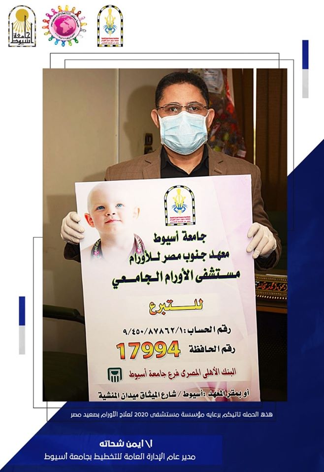 قيادات جامعة أسيوط الأكاديمية والإدارية وبعض الشخصيات العامة يشاركون فى حملة مجتمعية لدعوة أفراد المجتمع لتوجيه تبرعاتهم لصالح دعم معهد جنوب مصر للأورام