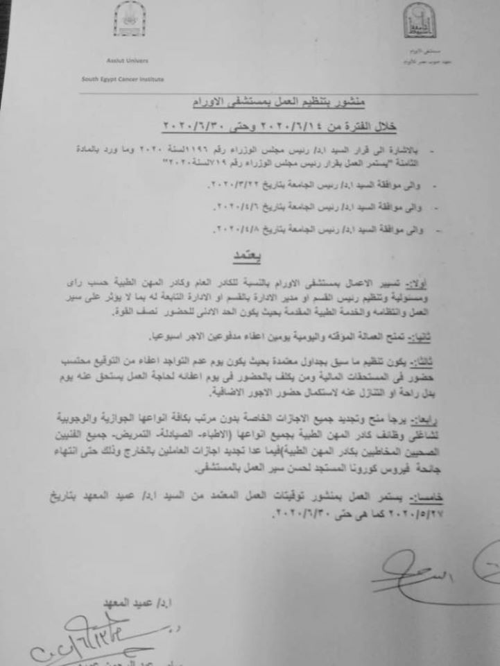 أصدر الدكتور طارق الجمال رئيس جامعة أسيوط عدداً من قرارات التعيين الجديدة داخل عدد من كليات الجامعة والتي تضمنت 6 رؤساء أقسام جدد بمختلف كليات الجامعة حيث نص القرار الخاص بمعهد الأورام على تعيين الدكتور آمن حمدي زكي رئيساً لقسم طب الأورام