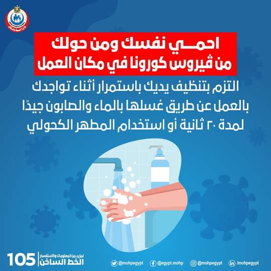 تطهير ورش جميع اقسام المستشفي من عيادات خارجيه واقسام ومكاتب اداريه وذلك حرصا من اداره المعهد للحد من انتشار فيرس كرونا للمستشفي وسوف يتم ذلك بصفه دوريه حرصا من إدارة المعهد ومستشفى الأورام على مكافحة ومنع انتقال اي عدوي للمرضى وللعاملين.