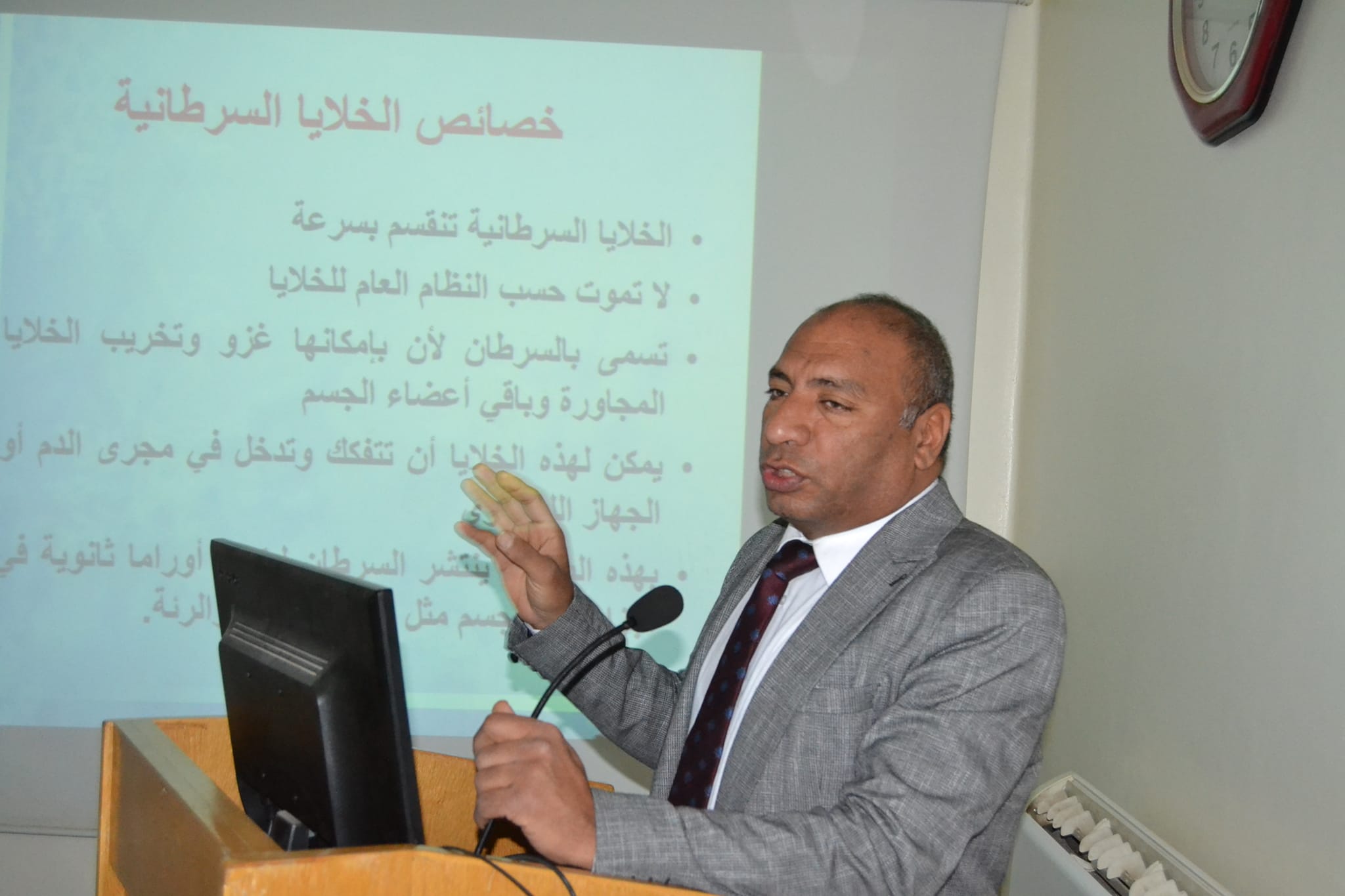 القى الندوة الأستاذ الدكتور / محمد ابو المجد وكيل معهد جنوب مصر للاورام لشئون البيئة وخدمة المجتمع.
