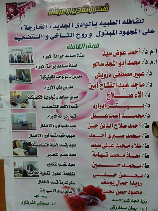 شكر وتقدير للقافلة الطبيه بالوادى الجديد