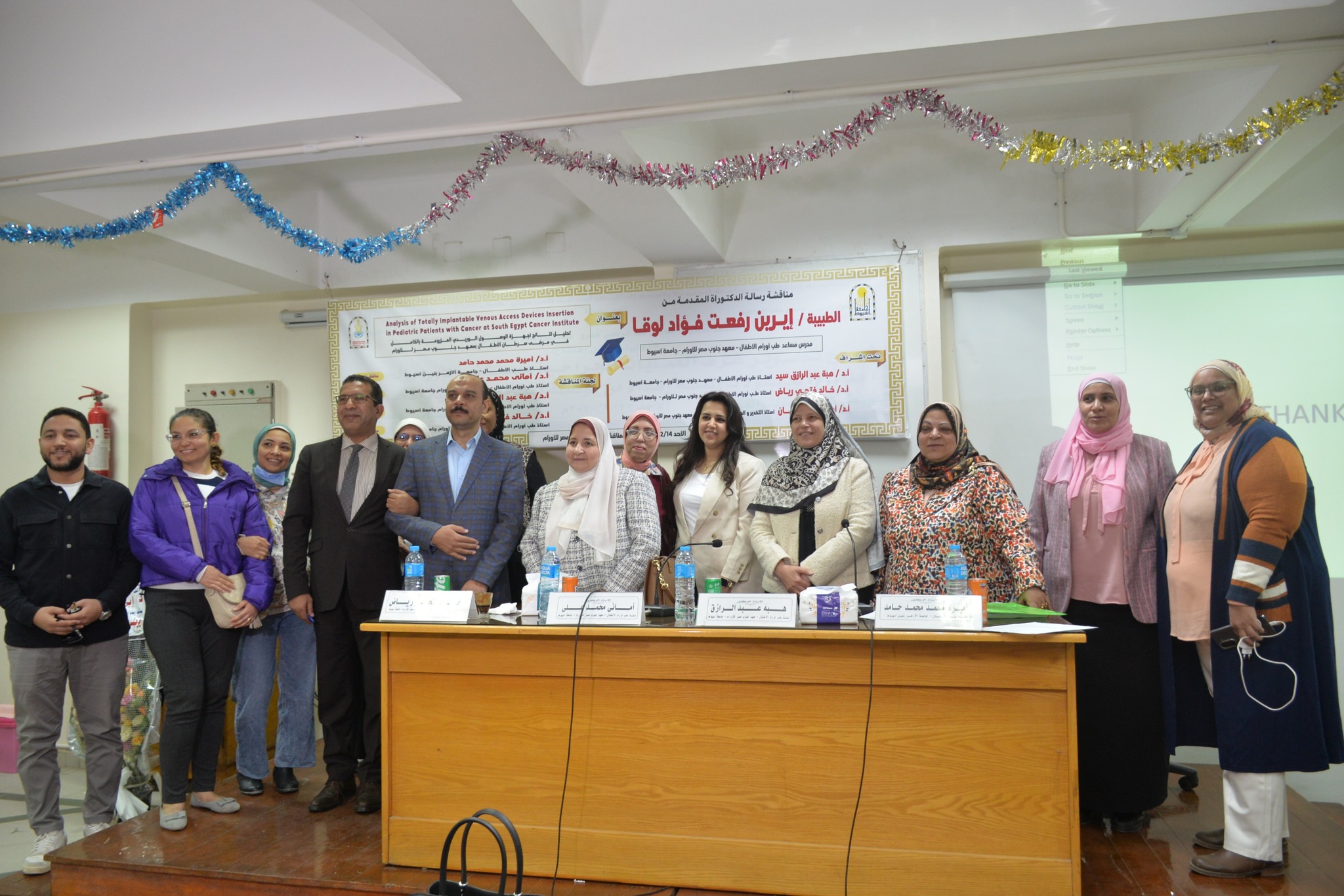 تهنئة للدكتورة / ايرين رفعت فؤاد بقسم طب أورام الأطفال بالمعهد لمناقشة رسالة الدكتوراة 14 ديسمبر 2025 تهنئة مقدمة من السيد الاستاذ الدكتور/ عميد المعهد والسادة الوكلاء و مدير المستشفى ونائبه والسادة أعضاءهيئة التدريس والعاملين يهنئون الدكتورة/ ايرين رفعت فؤاد بقسم طب أورام الأطفال بالمعهد لمناقشة وقبول رسالة الدكتوراة