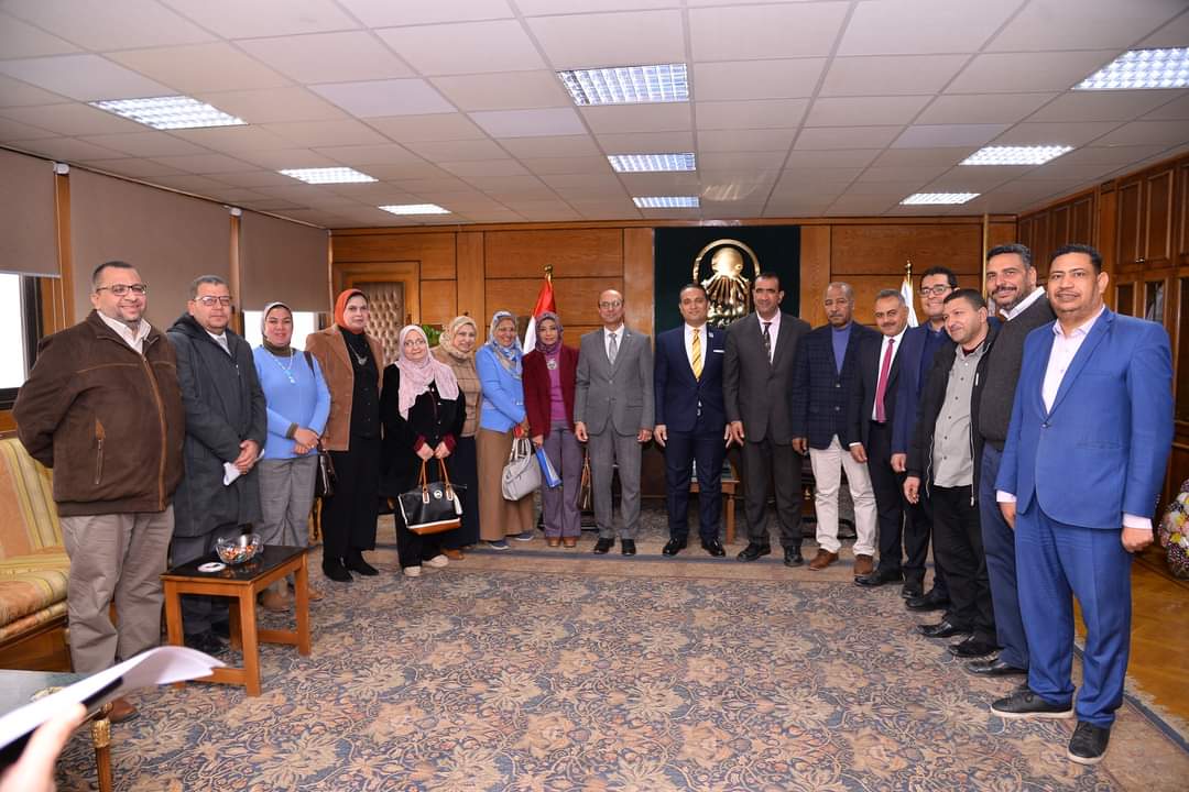 زيارة من السيد الاستاذ الدكتور / ايمان مسعد عميد المعهد والسادة أعضاء هيئة التدريس والعاملين بالمعهد للسيد الاستاذ الدكتور / احمد المنشاوي في اول ايام تولية منصب رئيس الجامعة