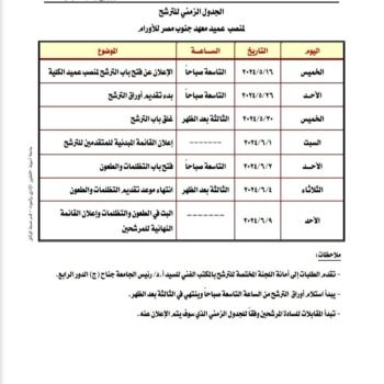 الجدول الزمني للترشح لمنصب عميد معهد جنوب مصر للأورام