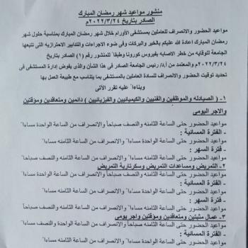 تعليمات خاصة بشأن مواعيد العمل في شهر رمضان المبارك