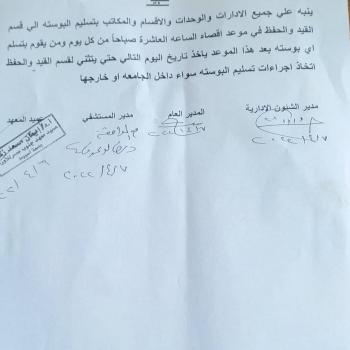 تنبية هام للإدارات والوحدات والأقسام والمكاتب بشأن تسليم البوستة