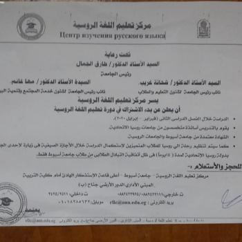 اعلان هام لمن يرغب في الاشتراك في دورة تعليم اللغة الروسية بمركز تعليم اللغة الروسية بالمبنى الاداري بالجامعة