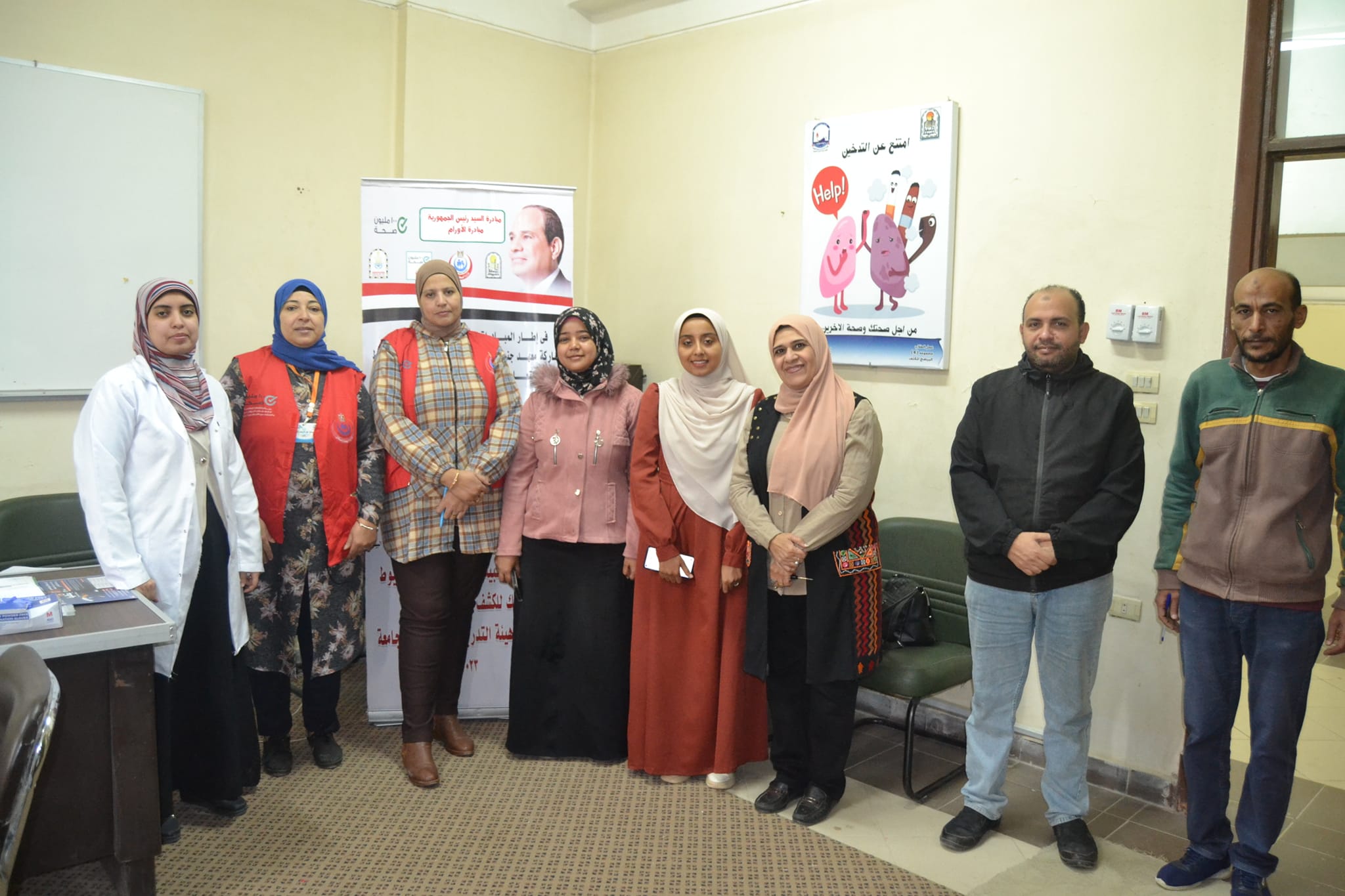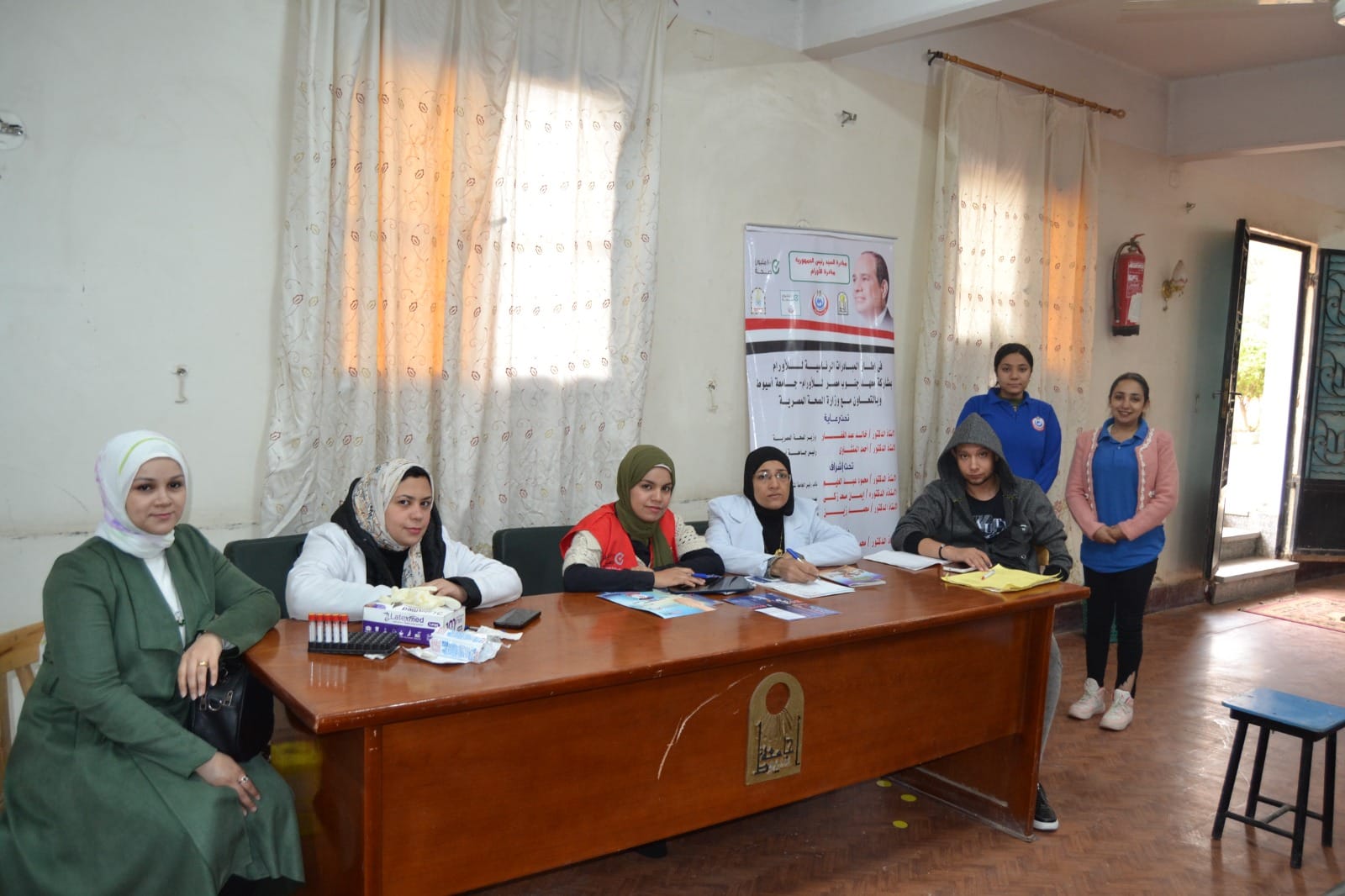 وقد تم الكشف وعمل تحليل للسادة العاملين بالكلية .