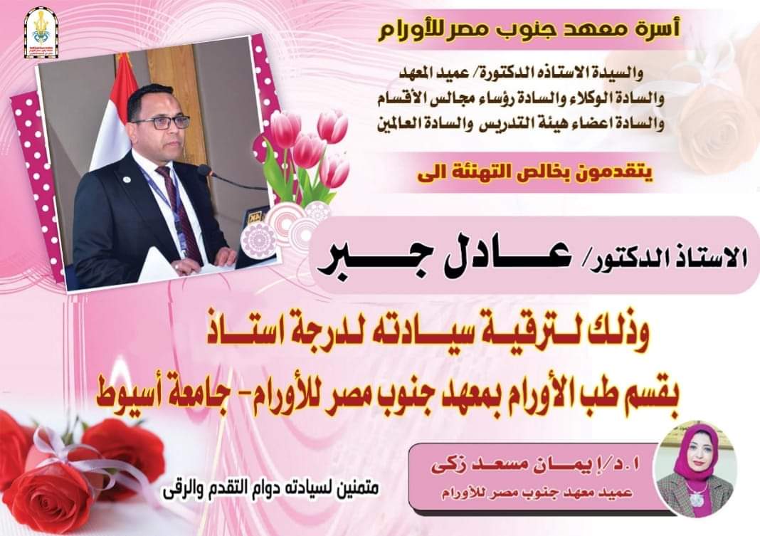 ترقية السيد الاستاذ الدكتور / عادل جبر لترقية سيادته الى درجة استاذ