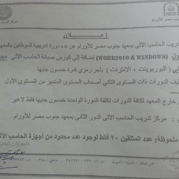 إعلان عن دورات تدريبية بمعهد جنوب مصر للأورام