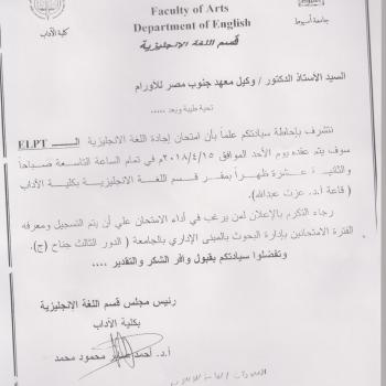 15/4/2018تقرر عقد امتحان اجادة اللغة الانجليزية (ELPT) يوم الاحد الموافق
