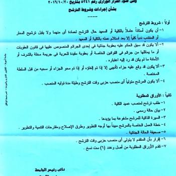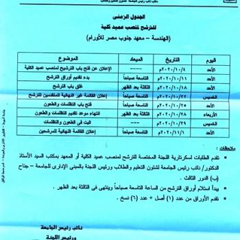 Timetable for candidacy for the post of Dean of the South Egypt Cancer Institute
