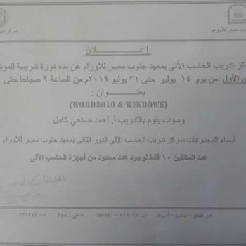 The Computer Training Center announces a training course for employees from 14 July to 31 July 2019