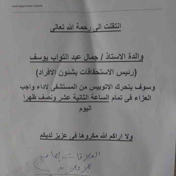 The administration of the South Egypt Cancer Institute offers its sincere condolences for the death of the mother of Professor / Mohamed Ali Abdel Razek, the supervisor of the laundry unit.We pray to…