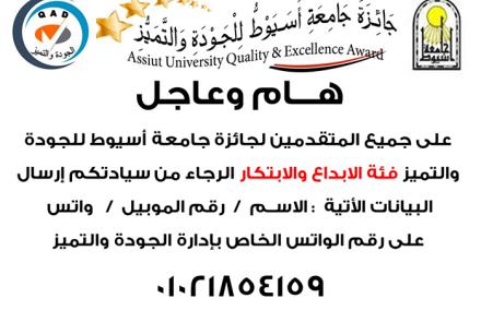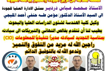 تهنئة مقدمة من ادارة الجودة والتميز بجامعة أسيوط