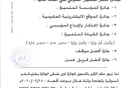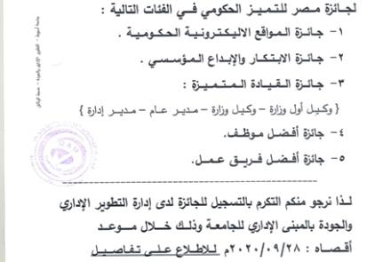 إعلان عن جائزة مصر للتميز الحكومى للكليات