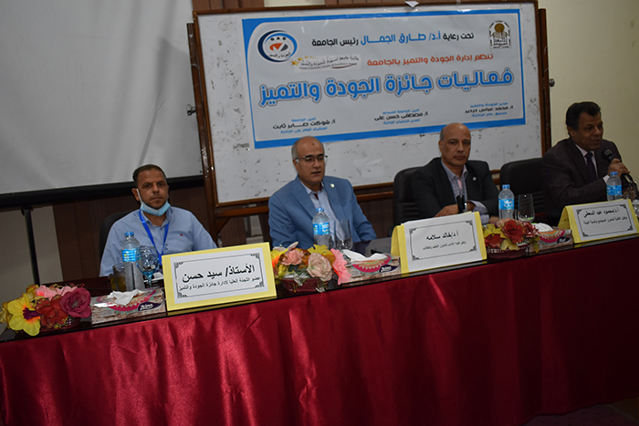 تحت اشرف السيد وكيل اول الوزارة الأستاذ / شوكت صابر ثابت، السيد وكيل الوزارة الأستاذ/ مصطفى حسن على امين الجامعة المساعد والمشرف على الإدارة ونائب رئيس مجلس إدارة الجودة التميز، والسيد الأستاذ / محمد عباس دردير مدير الجودة والتميز بالجامعة وممثل الإدارة العليا للجودة ومنسق عام الجائزة