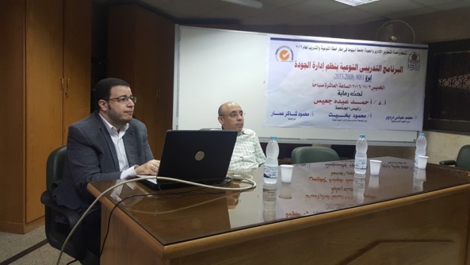 برعاية كريمه من السيد الأستاذ الدكتور / أحمد عبده جعيص رئيس الجامعة وتحت إشراف السيد وكيل أول الوزارة أمين الجامعة الأستاذ / محمود شاكر عمار ، وممثل الإدارة العليا للجودة السيد وكيل الوزارة الأستاذ / محمود بخيت -أمين الجامعة المساعد ، وبحضور السيد / محمد عباس دردير مدير التطوير الإدارى والجودة بالجامعة .