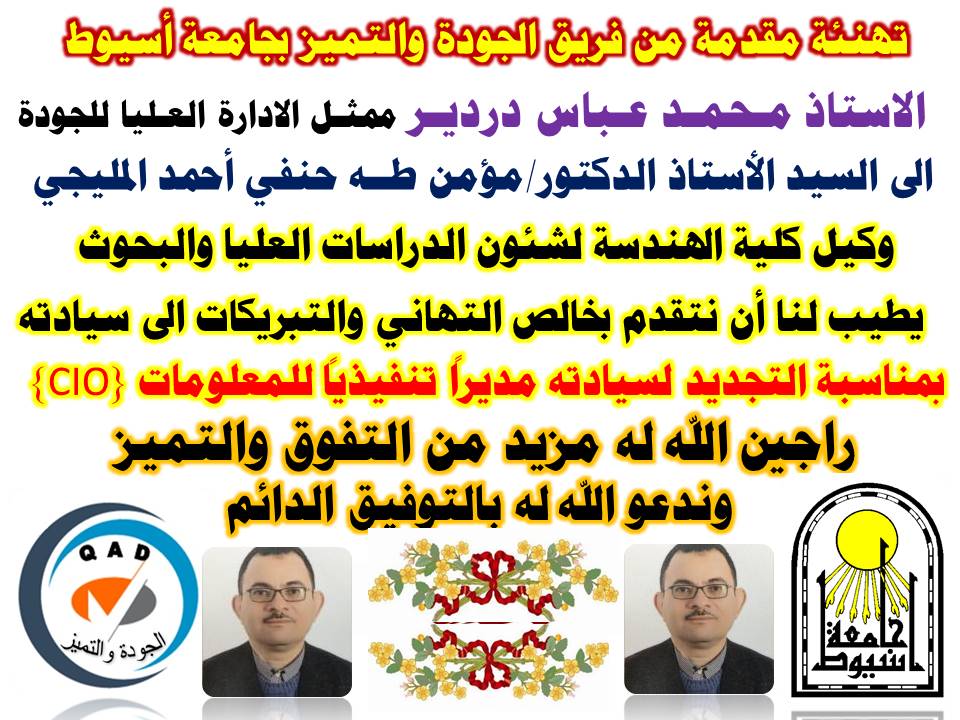 تهنئة مقدمة من ادارة الجودة والتميز بجامعة أسيوط