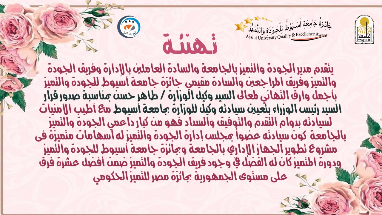 برعاية كريمة من السيد .أ. د/ أحمد المنشاوي رئيس الجامعة