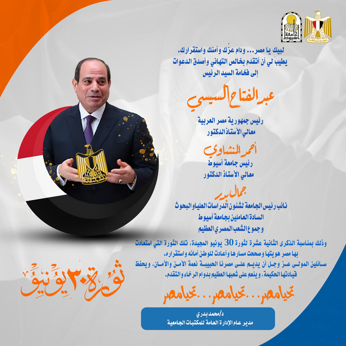 نائب رئيس الجامعة لشئون الدراسات العلياوالبحوث السادة العاملين بجامعة أسيوط وجموع الشعب المصري العظيم