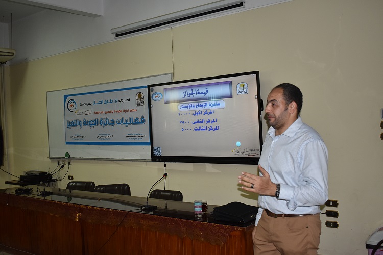 برعاية كريمة من السيد الأستاذ الدكتور / طارق عبد الله الجمال - رئيس جامعة اسيوط نظمت أدارة الجودة والتميز لقاء التوعية بجائزة جامعة أسيوط للجودة والتميز،