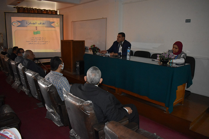 بكلية العلوم واستقبل السيد الأستاذ الدكتور / حسن الهوارى عميد الكلية السابق فريق الجودة والتميز وبحضور لفيف من السادة أعضاء هيئة التدريس والعاملين بالكلية تم بدء اللقاء بتقديم الدكتور / مصطفى مرسى عرض توضيحي وشرح الجوائز وآليات التقدم وسبل الدعم الفني ثم قام بالرد على استفسارات السادة أعضاء هيئة التدريس والعاملين بالكلية، وحضر اللقاء فريق الجودة والتميز بالجامعة كلا من