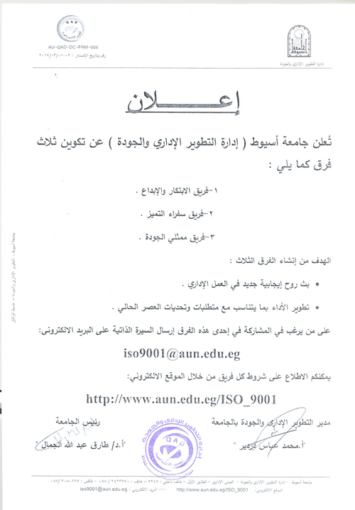 التقدم لفرق ( الابتكار والإبداع ، سفراء التميز ،فريق ممثلي الجودة) 6 أغسطس 2019 نظراً للاقبال المتزايد تم مد فترة الاعلان للتقدم لاحدى الفرق حتى 30 سبتمبر 2019