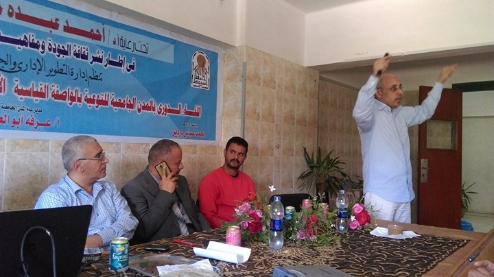 برعايه كريمه من السيد الاستاذ الدكتور / أحمد عبده جعيص – رئيس الجامعة ، والسيد الاستاذ / محمود بخيت أمين الجامعة نظمت إدارة التطويرالإدارى والجودة بجامعة أسيوط بالتعاون مع الادارة العامة للمدن الجامعية اللقاء الدورى بالمدن الجامعية للتوعية بالمواصفة القياسية الايزو 2015:900 والتميز فى تقديم الخدمة وذلك يوم الخميس الموافق 2/11/2017 بمبنى 4 بالمدينة الجامعية طالبات .