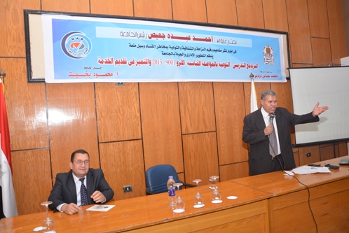 وبرعايه كريمه من السيد الاستاذ الدكتور / أحمد عبده جعيص – رئيس الجامعة ، وبحضور السيد الاستاذ / محمود بخيت أمين الجامعة تم تنظيم الفاعلية الثانية للتوعيه والتدريب ضمن فعاليات الاعداد لتجديد شهادة الايزو 2015:9001, و بحضور السيد الاستاذ الدكتور / أحمد سيد سباعى محاضر اللقاء , والسيد الاستاذة الدكتورة/ سناء مصطفى محمد محاضرة ، وفريق الجودة بالتطوير الإدارى والجودة ، والسادة مديرى العموم ومديرى الإدارات والمراجعين الداخليين بالجامعة .
