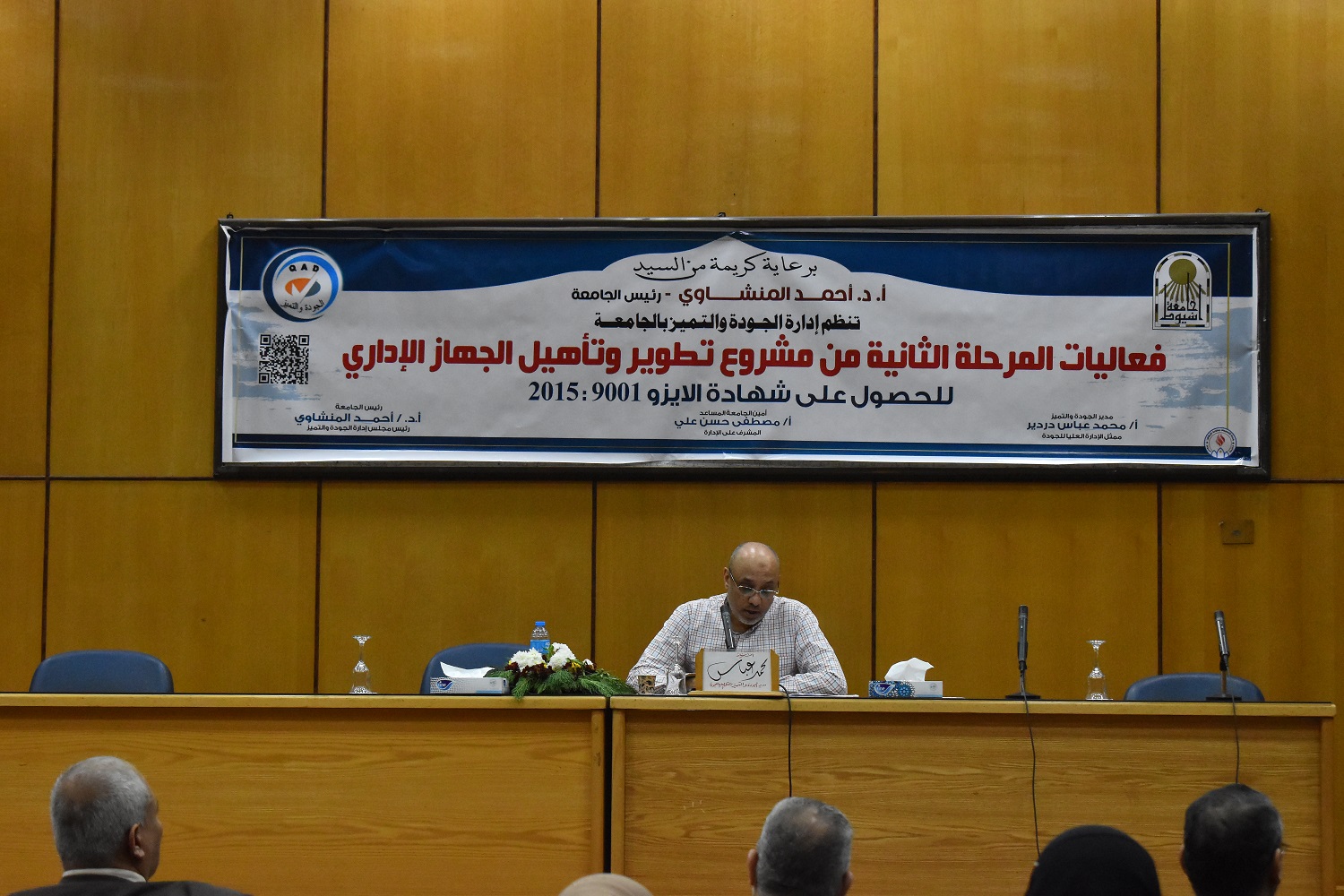 برعاية كريمة من السيد أ.د / رئيس الجامعة وتحت اشراف السيد /امين الجامعة والسادة أمناء الجامعة المساعدين واستكمالاً لفعاليات المرحلة الثانية لمشروع تطوير الجهاز الإداري بالجامعة والتي تشمل 7 كليات ،11 إدارة تم الأربعاء الموافق 30/11/2022 اختتام فعاليات أكتوبر ونوفمبر بورش عمل حول فاعلية نظام الجودة والذى أشار فيها السيد / محمد عباس إلى أهمية الدور الذى يلعبه ممثلي الجودة وفرق العمل وأيضا أهمية تفعيل دور فرق العمل بالكليات والإدارات لنقل وتبادل الخبرات بين الموظفين وقد تم خلال اللقاء عرض تقديمي للسيدة / هدى كامل تضمن العرض محاور رؤية مصر2030 وأهمية الاستفادة من تلك الرؤية في تطوير الجهاز الإداري.
