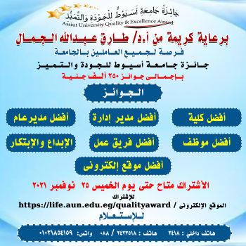 برعاية كريمة من السيد الأستاذ الدكتور / طارق عبد الله الجمال - رئيس جامعة بدأت أدارة الجودة والتميز في تنظيم خطة التوعية بجائزة جامعة أسيوط للجودة…