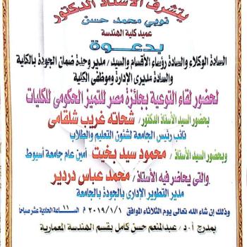 يتقدم السيد / محمود بخيت ممثل الإدارة العليا للجودة والعاملين بإدارة التطوير الإدارى والجودة وفريق الجودة بالجامعة وفريق…