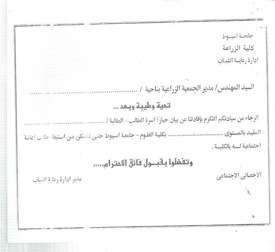 - The Faculty of Agriculture opens the Social Fund payments twice in the first academic year. First at the beginning of the first semester and the second at the beginning of second semester.