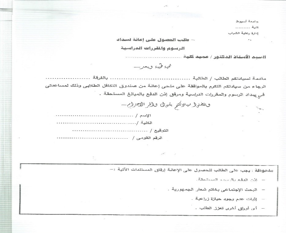 - Payment must be made after submitting all the required documents through the administration of Youth Welfare faculty.