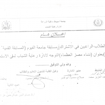 The M.Sc. Thesis submitted by Mr. Mostafa Abdel Moneim Mostafa Hassan, Food Science & Technology -Department, entitled: