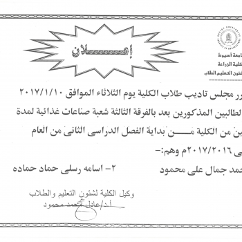 The laboratories and scientific equipment committee will hold its monthly meeting number (30) on Wednesday 15/2/2017 at 11 AM in the office of Vice Dean for Community Services and Environmental…