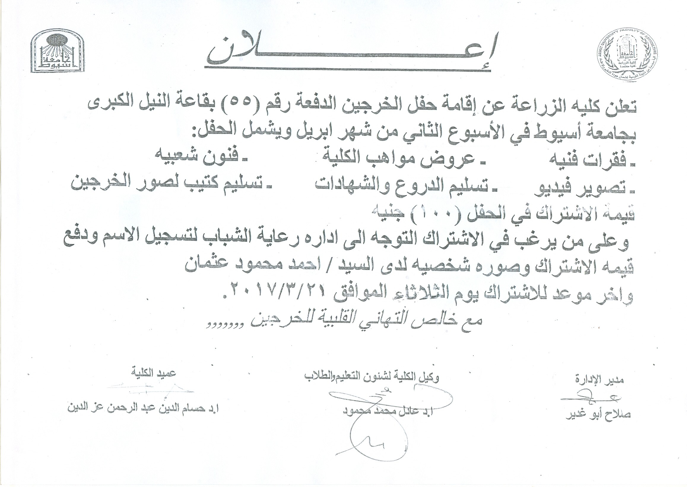 إعلان الإشتراك بحفل الخريجين الدفعة رقم (55) 14 مارس 2017 إعلان الإشتراك بحفل الخريجين الدفعة رقم (55)